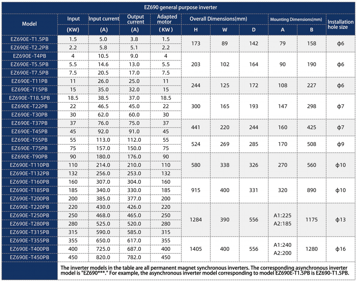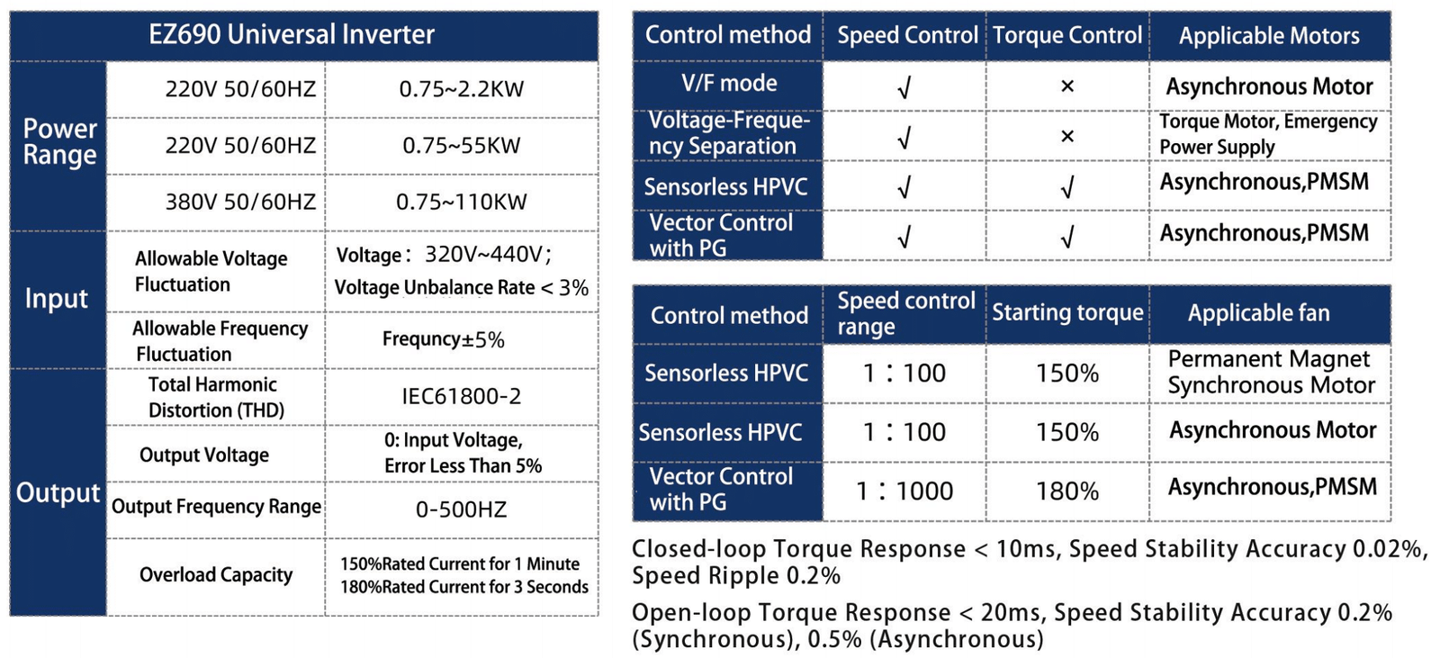 The EZ690 series not only adopts internationally leading vector control technology, compatible with asynchronous and synchronous motor control, but also achieves a compact design through rational component layout while prioritizing high performance and high reliability. It enhances customer usability and industry-specific design, featuring abundant expansion interfaces and new expansion accessories, achieving high performance, high reliability, high power density, and high applicability.